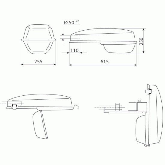 - Основание изготовлено из алюминиевого сплава методом литья под давлением и защищено порошковым покрытием