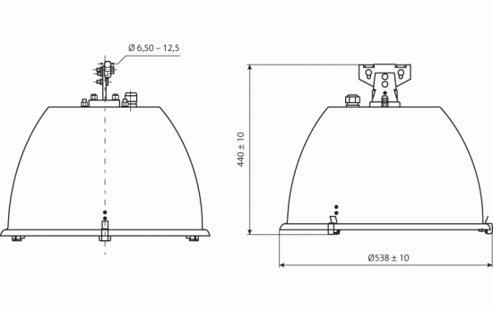 - Светильник рекомендуется устанавливать на несущем тросе диаметром 6 - 12,5 мм. Высота установки 6 - 8 м