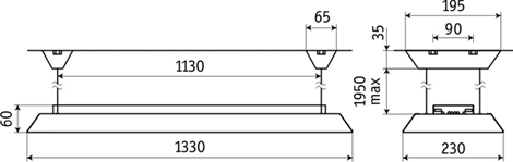Монтируется на поверхность потолка на тросовых подвесах,