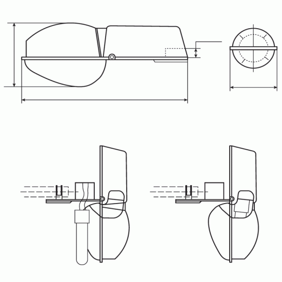 - Для технического обслуживания светильника необходимо открыть два замка в торцевой части светильника. Оптический отсек с корпусом примет вертикальное положение. Это обеспечит свободный доступ к дросселю, ИЗУ, конденсаторам, клеммным колодкам с монтажными проводами, а также к деталям для крепления светильника на кронштейн опоры (скобы, болты, гайки)
