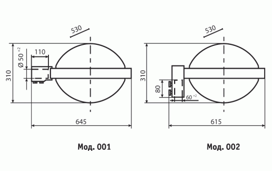 - Мод. 001 - для установки на Г-образный кронштейн