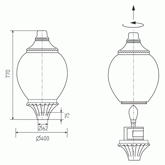 - Светильник рекомендуется устанавливать на вертикальную трубу диаметром 60 мм. Высота установки светильника 3 - 5 м