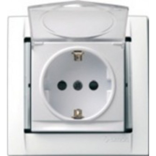 Розетка 1м с/з, с з/ш с крышкой (белая) Simon 34 34445-30