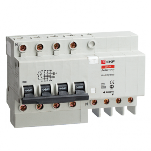Дифференциальный автомат АД-4 25А/30мА (характеристика C, тип AC) 4,5кА EKF. Дифференциальный автоматический выключатель АД-2(4) (S) EKF PROxima представляет собой аппарат, сочетающий функции автоматического выключателя с устройством защитного отключения. При обнаружении автоматическим выключателем в защищаемом участке сети тока утечки (повреждения) на землю или сверхтока (тока перегрузки или короткого замыкания) происходит срабатывание устройства, приводящее к отключению защищаемой сети. Особое отличие дифференциальных автоматов EKF – в наличии встроенного блока защиты от перенапряжения.