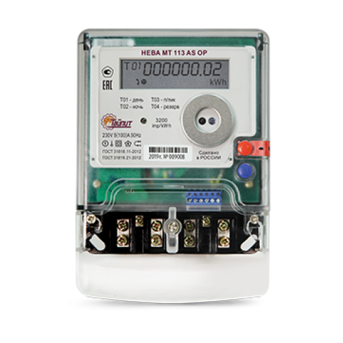 НЕВА МТ 113 AS OP 5(100) А. Однофазный многотарифный счётчик. Счетчик изготовлен и принят в соответствии с обязательными требованиями ГОСТ 31819.21-2012, ГОСТ 31818.11-2012, ТАСВ.411152.002 ТУ. Счетчик внесен в Государственный реестр средств измерений и допущен к установке на всей территории РФ и стран ближнего зарубежья. Межповерочный интервал в республике Казахстан - 8 лет, межповерочный интервал в республике Таджикистан - 8 лет, межповерочный интервал в республике Узбекистан - 4 года.